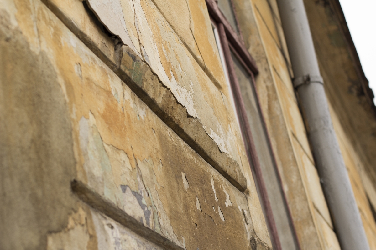 Zespół zarządzający 15-letnim blokiem mieszkalnym zauważył wyraźne oznaki starzenia się elewacji: szare przebarwienia, widoczne pęcherze i włosowate pęknięcia. Wstępna diagnostyka wykazała obecność alg i mchów w dolnych partiach ściany, a także wykwity solne sugerujące migrację wilgoci.